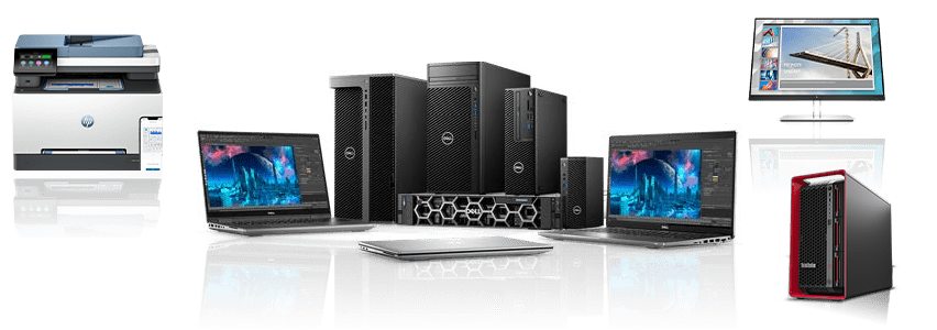 We supply laptops, desktops, workstations, servers, racks, monitors, printers, scanners, and related IT hardware.